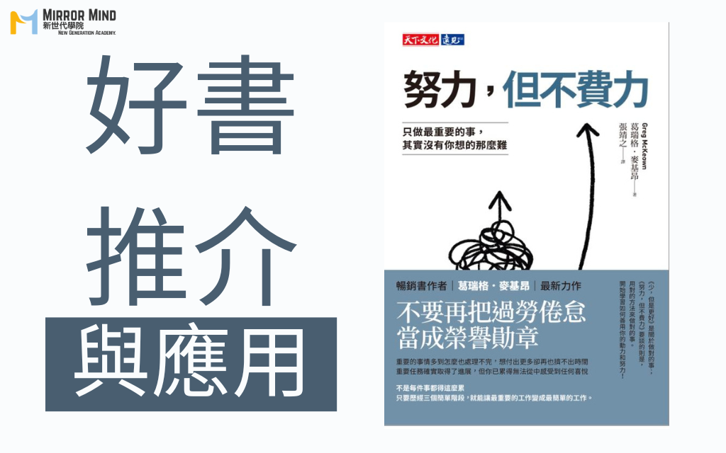 葛瑞格·麥基昂(Greg McKeown)在《努力,但不費力》(Effortless)一書中,正是提出如何「不費力」地完成真正重要的事,讓我們一起重新審視「努力」的本質與方法。