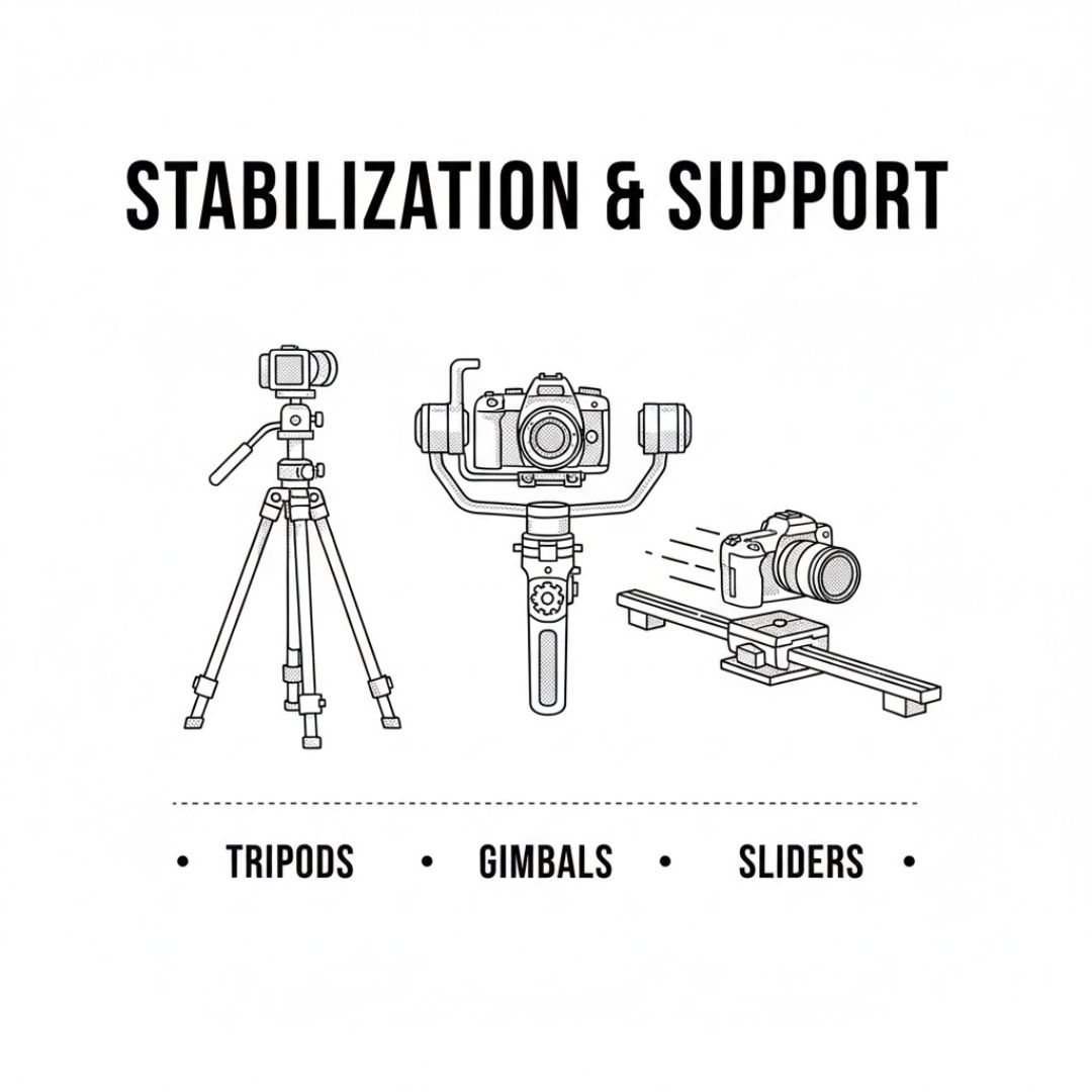 - Batteries & Power Solutions: V-mount batteries or high-capacity power banks keep your shootings running, especially for location work.