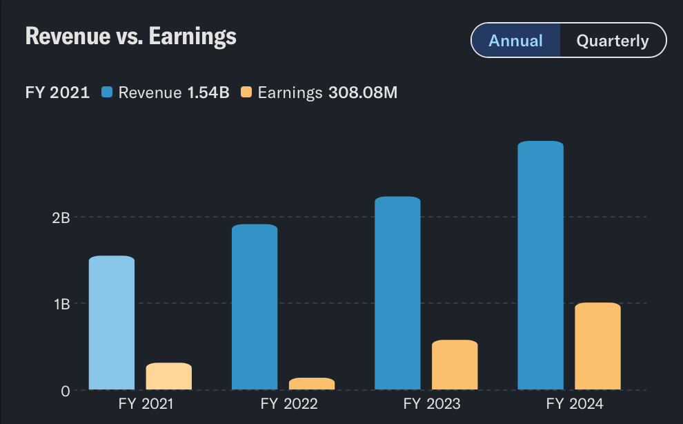 從股價和市盈率看起來絕對是是「超高估值」,反映市場對其未來盈利增長的預期極高。另一方面,它的盈利增速也確實配得起這個估值。