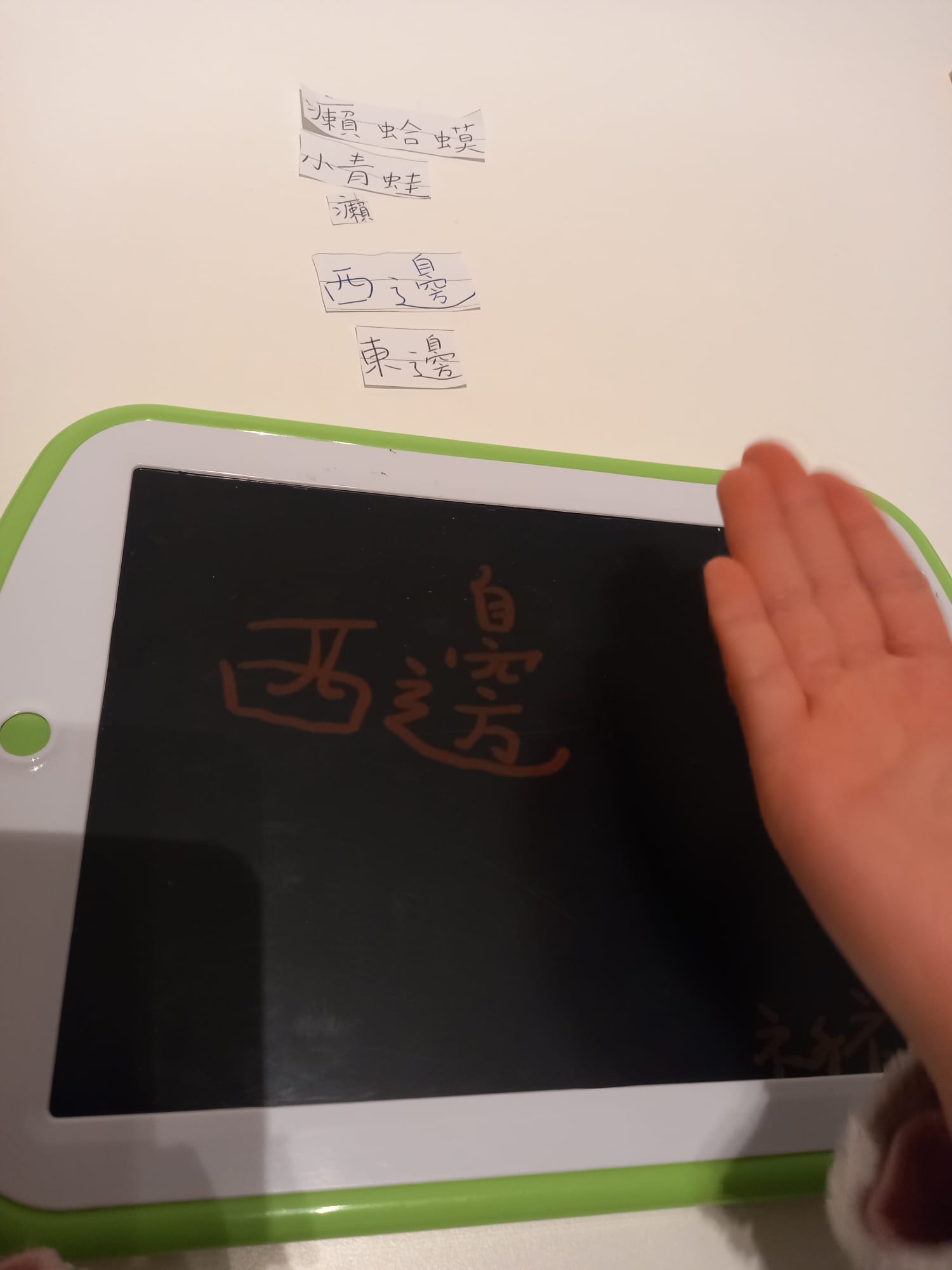 我會展示詞卡,然後給孩子一分鐘的時間。一分鐘後,孩子要在沒有任何提示的情況下寫出要默的詞語。例如,「邊」比較多筆劃,我會把字寫得大一點,讓孩子花一點時間認一認這個字的結構,然後才讓她自行寫出來。