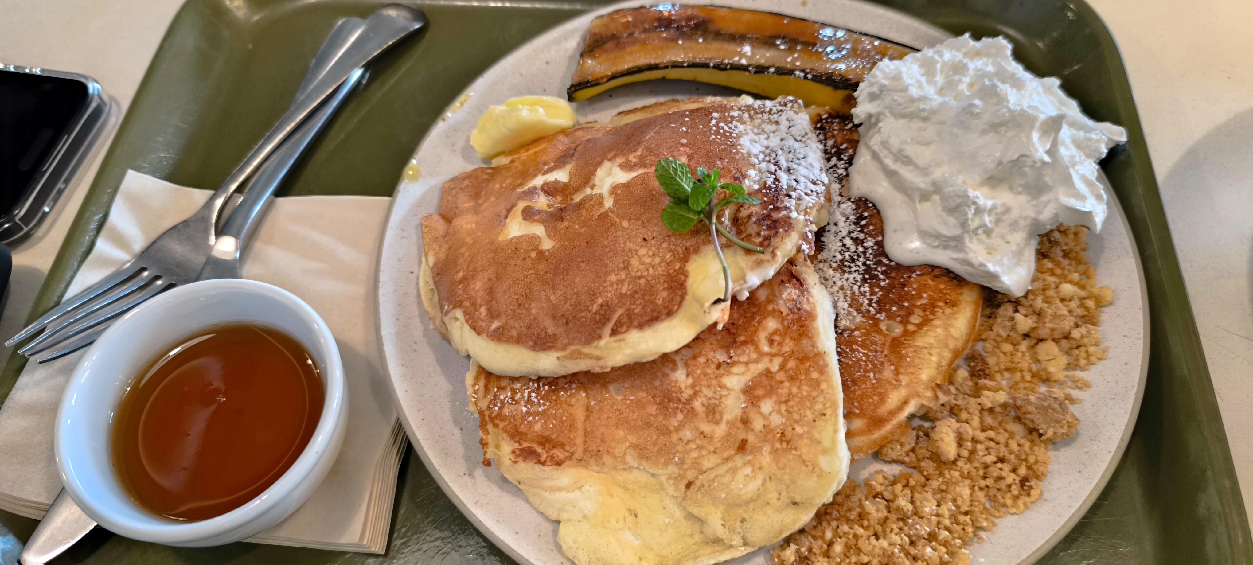 後來,餐點飲料送上來後,他拿起那張咖啡碟裡的卡片,卻是朝鮮文的說明😂。