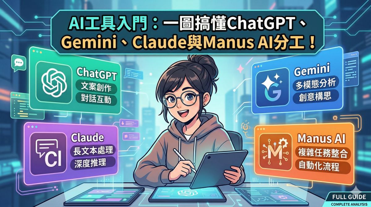 AI工具點樣揀?ChatGPT、Gemini、Claude與Manus AI分工與整合超簡潔入門
