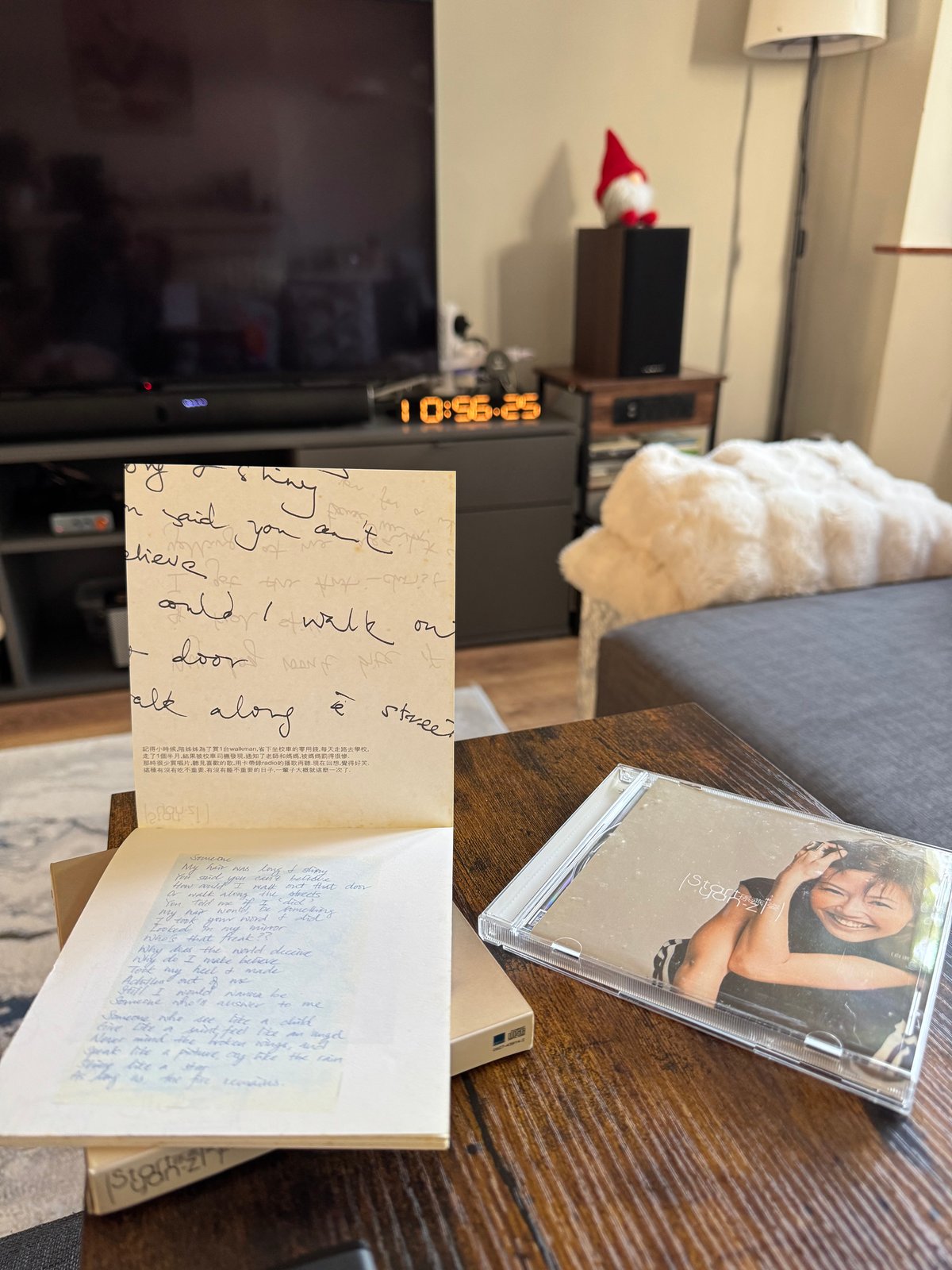 來到英國這麼久,今天終於打開了那三個裝滿 CD 的紙箱。我挑選了20隻特別喜歡的專輯,放進播放器細細品嚐。雖然這只是一套在 Amazon 購買的平價音響組合,但當 CD 唱盤播放着熟悉的旋律,一邊翻看包裝內的歌詞與插圖,音樂的畫面彷彿再次在眼前流動。