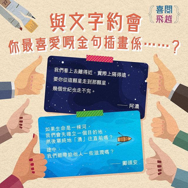 同樣,意想不到,近日朋友傳來相片,方知道自己的一段文字竟被圖書館挑選出來,當作金句,更與知名作家阿濃並列呢!受寵若驚。