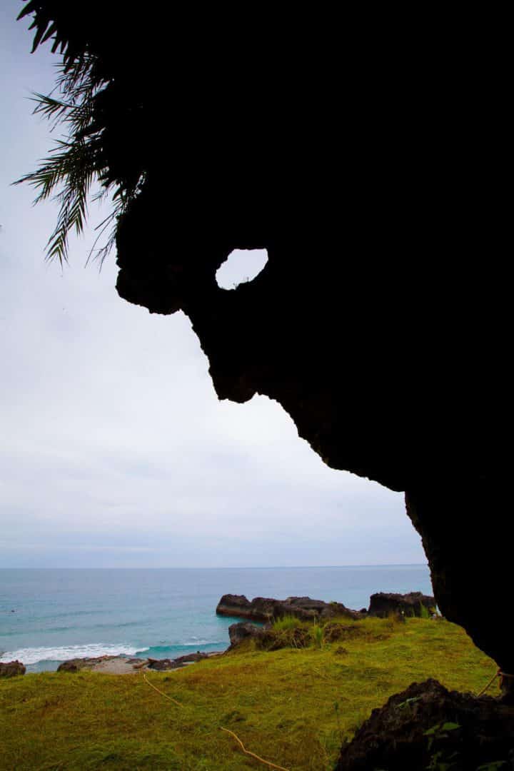 因其中完全沒有路牌或指引,走了一陣都沒有看到目標物,不由得開始害怕迷路,只能鼓勵自己再走一陣,反正就這一條路,若找不到原路返回就好了,直到小徑將至盡頭,前方道路漸漸開闊,整片大海在眼前展開,而右方有一片極似人臉側面的岩石,我們終於到達今天的目的地——人臉側面岩。