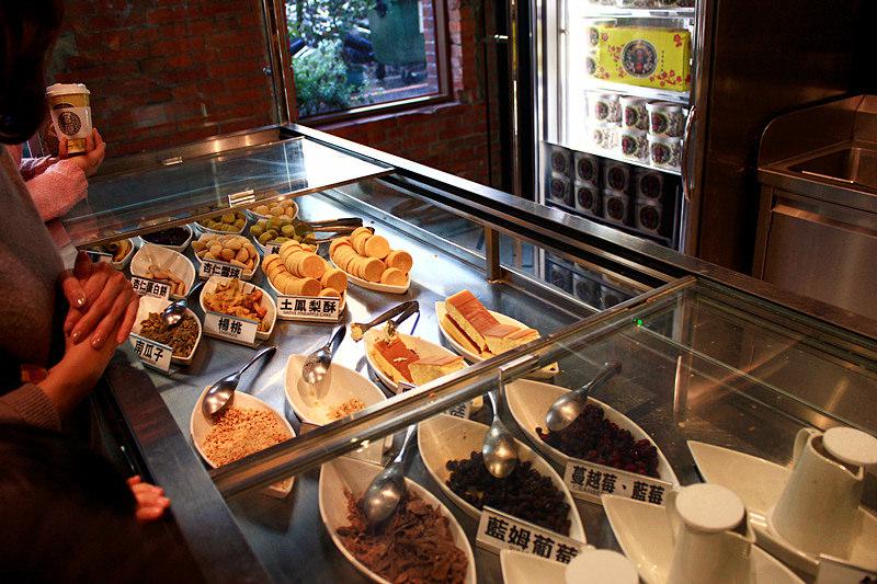 宮原眼科是以冰淇淋出名的,但在這裡也有賣乳酪蛋糕、台灣土鳳梨酥、巧克力、珍珠奶茶和各式各樣的茶包組合。產品的品質無庸置疑,但更超乎價值的是在宮原眼科裡面的體驗。不管是什麼口味的乳酪蛋糕、鳳梨酥、巧克力、瓦片餅乾,都可以免費試吃。