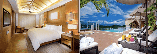 每個房間都有獨立陽台、獨立溫泉,「湖景房」可觀賞美麗的湖景,緊鄰環湖步道,適合晨間散步,夜間遊湖。有Sky bar可以小酌。提供多樣親子設施,如撞球、桌球、攀岩、桌遊等。也有游泳池跟男女泡湯池。服務非常好。餐點品質佳。