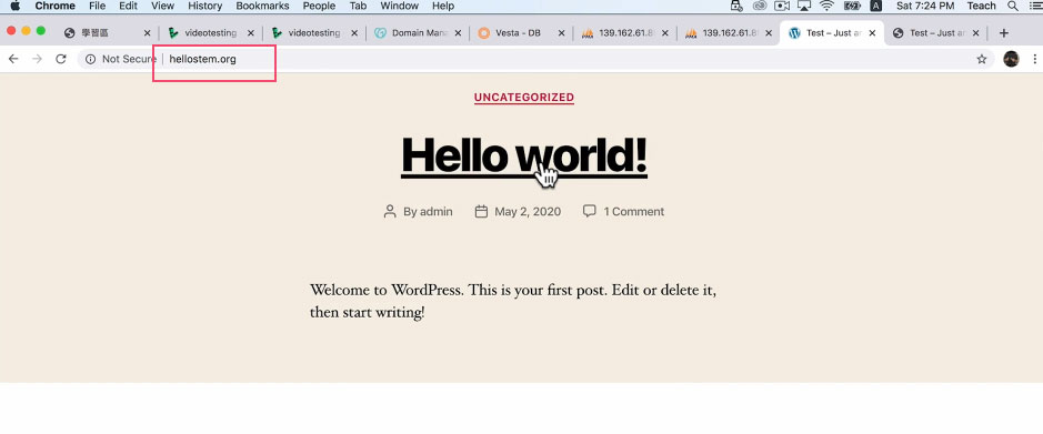 接下來,我們可以測試究竟我們轉server是否成功。我們可以輸入新的網站,例如:hellostem.org。它看起來好像成功了!