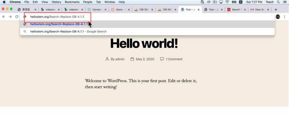 完成後,我們把剛下載的file名稱複製下來,並把它粘貼在新的網站後面。例如:hellostem.org,就變成了hellostem.org/Search-Replace-DB-4.1.1.