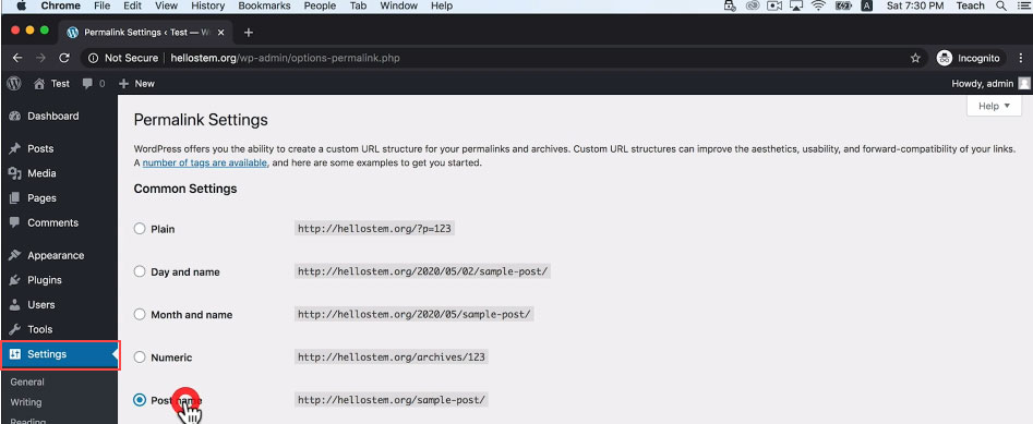 例如:我會把它設置為post name,然後按儲存,便大功告成!