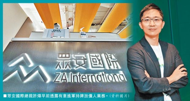 眾安國際總裁許煒今年3月初接受媒體訪問時提到,有考慮在港發展持牌放債人業務,正研究申請相關牌照,但暫時未有公布。