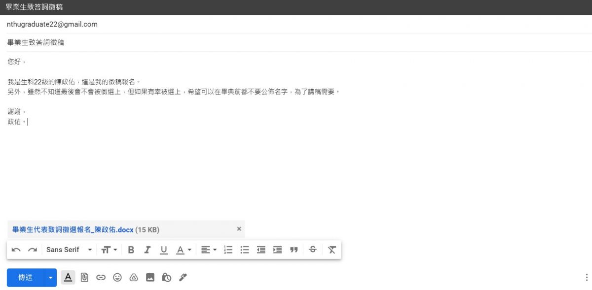 畢業生致詞報名信件