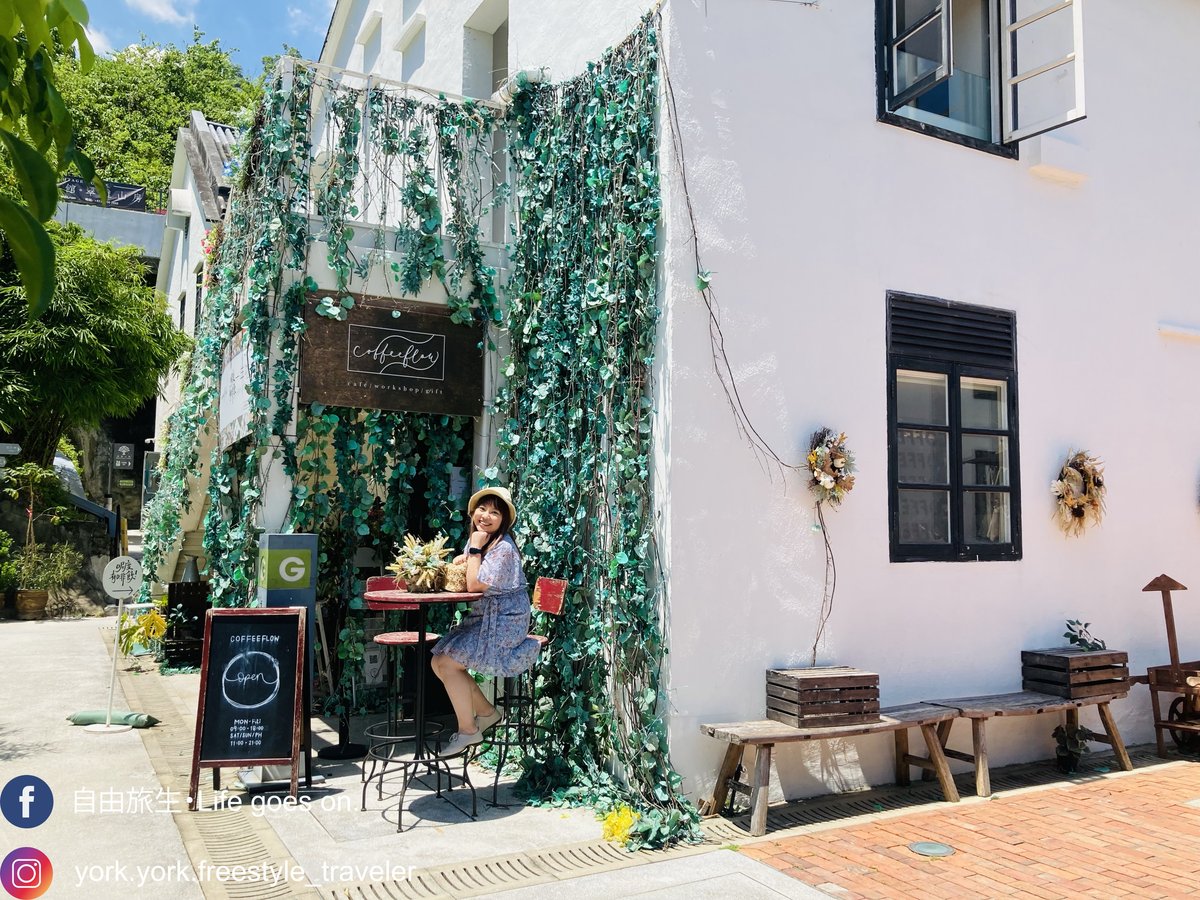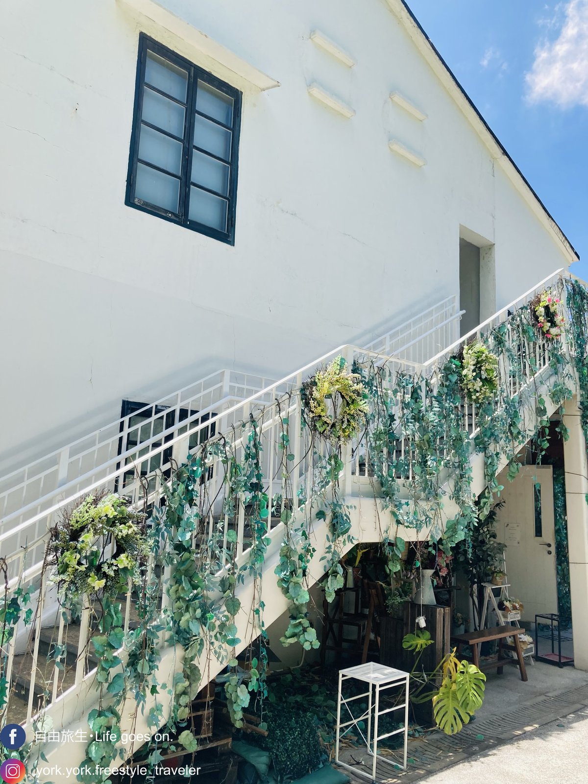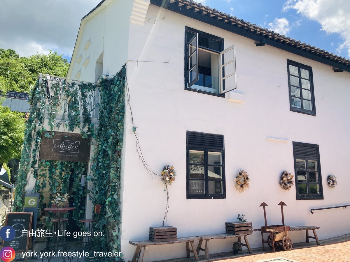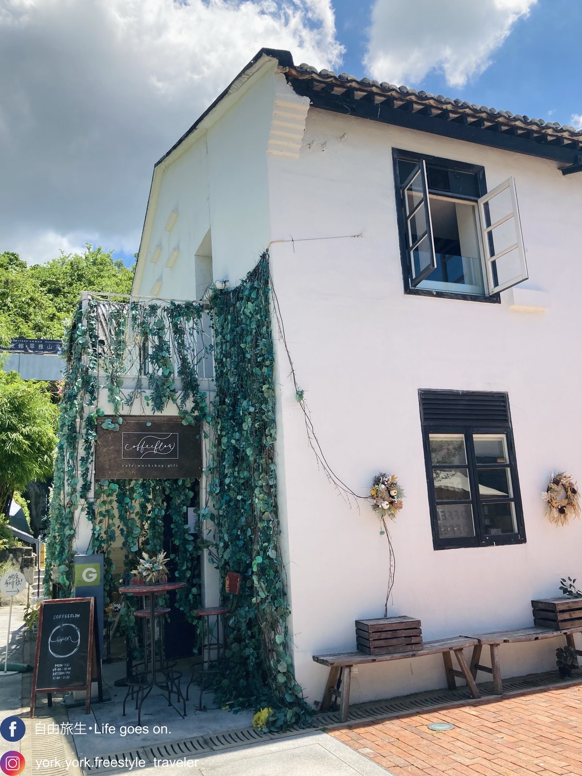 咖啡店的外觀是一座兩層白色小屋,有不少歐陸田園風情的裝飾,也有種簡約而純樸的感覺!