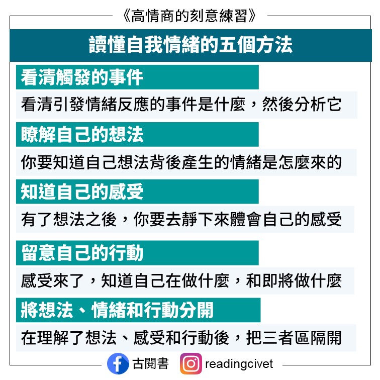 書中提供五種能讀懂自我情緒的方法
