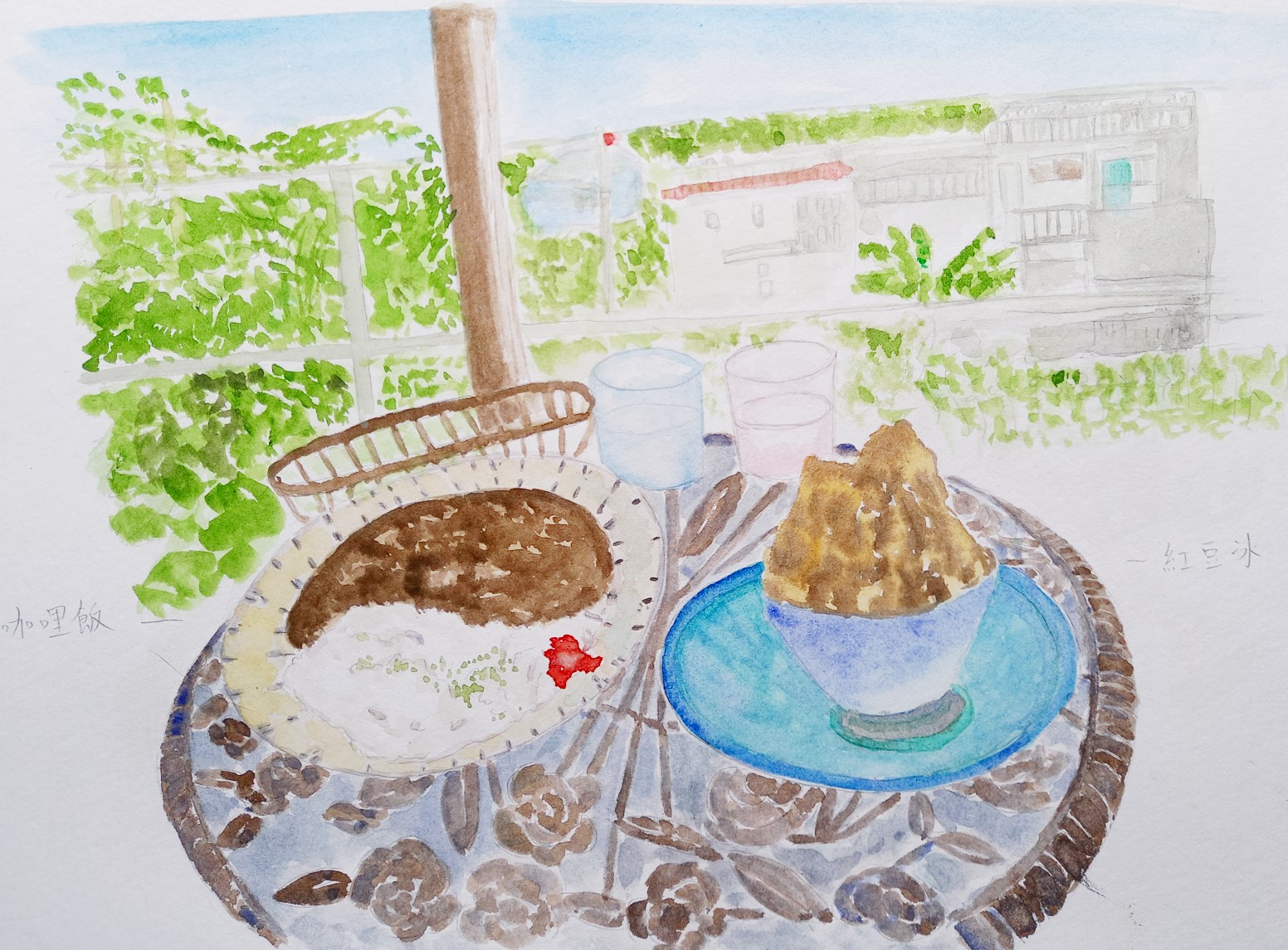 石疊屋真珠的擺設和食物都配得上美景,色彩繽紛的玻璃杯,黑色花紋桌子……