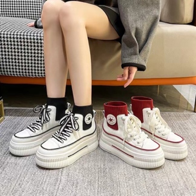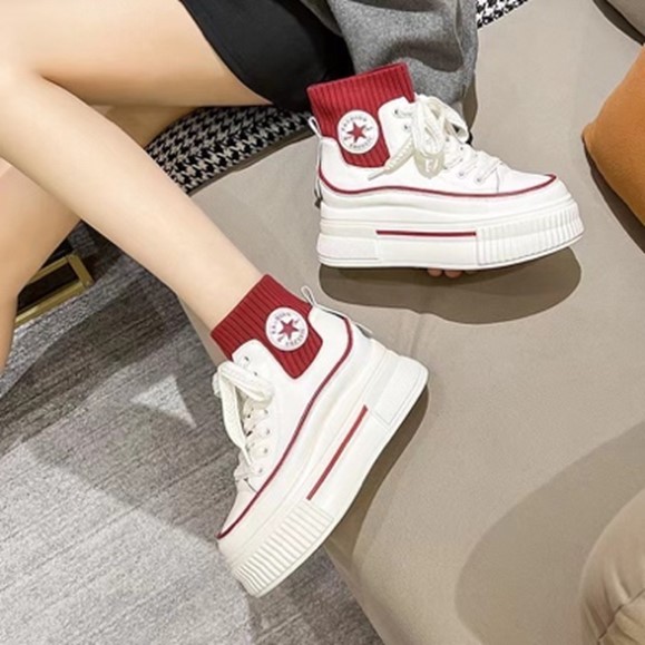 今天想看球賽、逛街?這款含襪休閒鞋推薦給有個性的妳,鞋底沒在客氣,直接給妳超厚5公分底台,瞬間拉長身高,底台材質相當輕,走起來其實非常輕鬆。