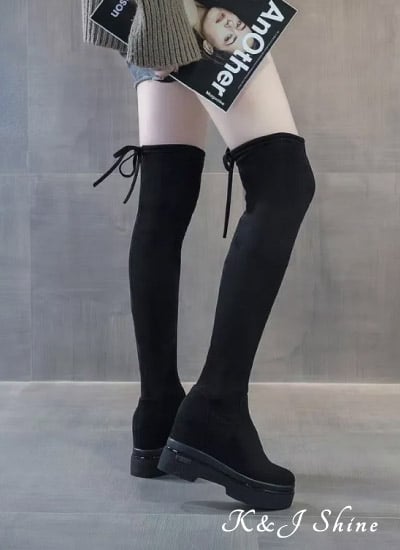 膝上靴有「拉長腿部」的效果,不但柔化大腿到小腿的過度線條,由於連接至鞋底產生了視覺的一致性,會讓小腿看起來超級纖細!加上內部偷偷增高,瞬間變成長腿姐姐,而且保暖度上也比其他靴子還要好。