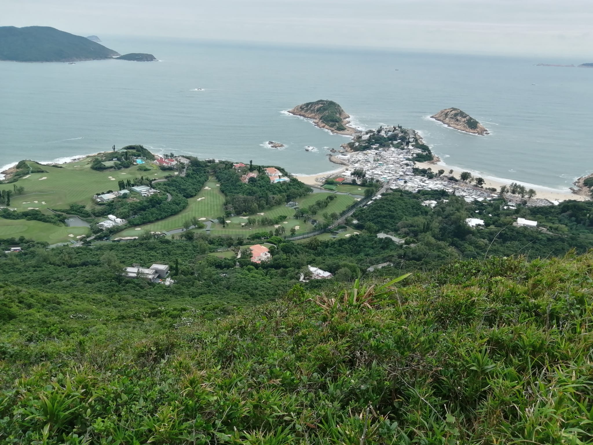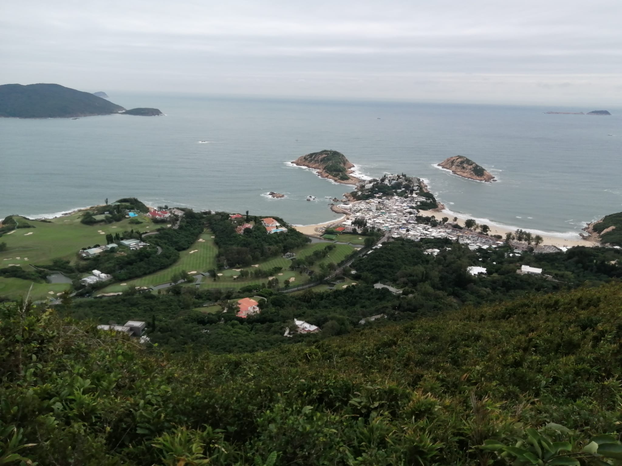 西望東龍島,東望浦台島,以及一片無盡的汪洋。加上風聲,浪潮聲,拍岸拍打聲,鳥兒聲,真是一個很正的 sound track 。石澳村與哥爾夫球俱樂部。形成一幅鄉村郊野與海的境貌。眼前一亮,心中叫著,正呀。太靚了。
