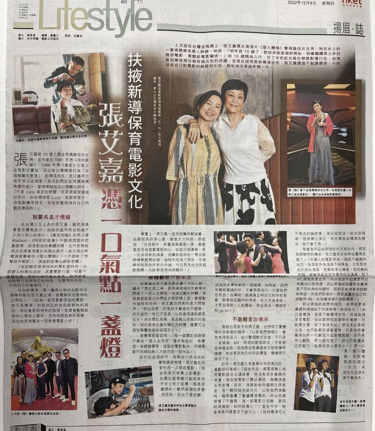 張艾嘉說:「明年七十歲是我新的開始,我會繼續努力多拍幾部電影,貢獻給電影藝術。」,真是「耆英」中的「奇英」!