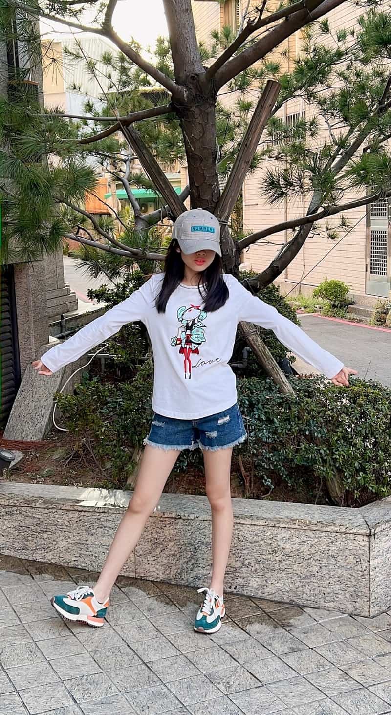 (放上妹妹外拍實穿~即使是白色上衣,款式也和外面賣場的不一樣,非常有特色!)