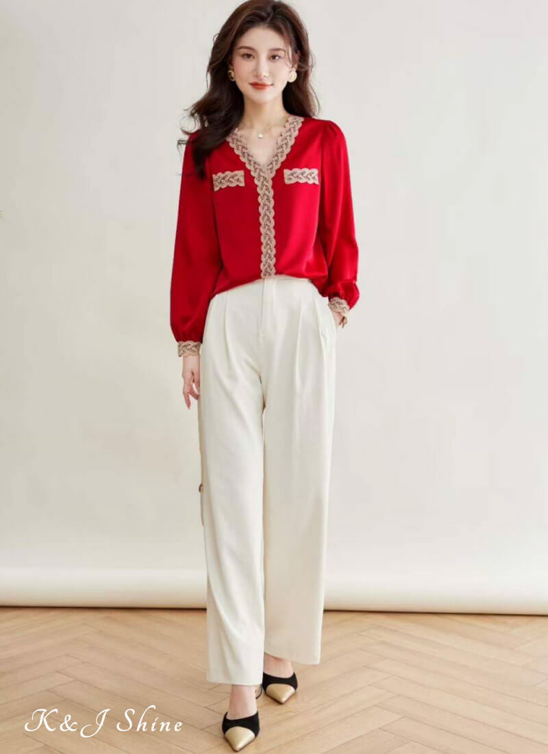簡約的素面與小 V 領設計散發著精緻感