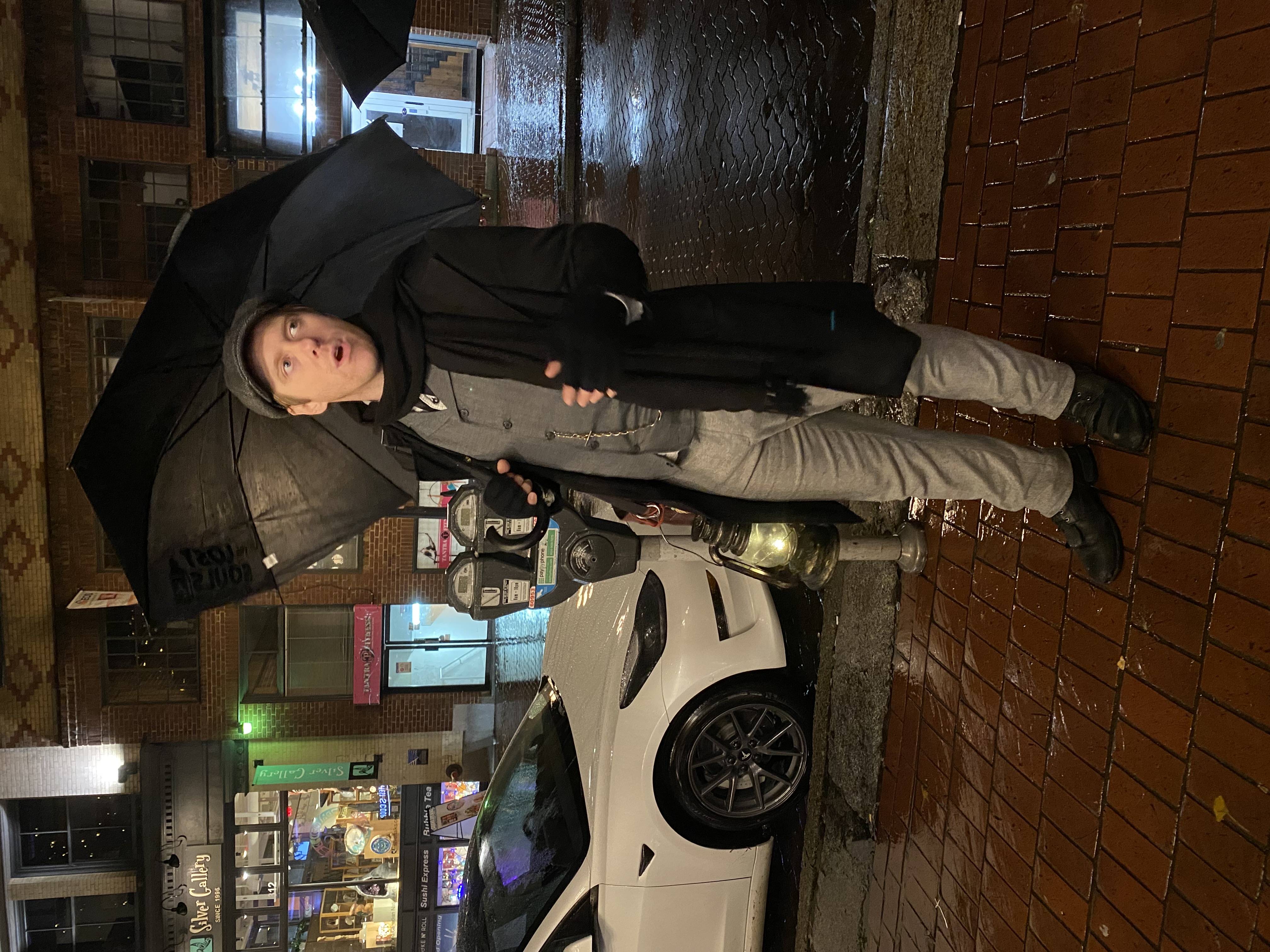 接下來,George以沉重的步伐,領我們轉入街角,來到獄卒廣場(Gaoler's Mews),這裏是溫哥華的第一座監獄。George後來娶了一位漂亮的姑娘,他與妻子Elsie有過一段風平浪靜的日子。後巷中,他告訴我們,有一天,Elsie身上長滿皮疹,有人趁他上班期間,把他心愛的妻子拖了出屋外,再把她鎖進一個儲藏室裏。在那個瘟疫時代,所有不幸染上天花的人,都會被送往死人島(Deadman's Island)上進行隔離,患者如果幸運的話﹐待病情好轉就能離開,但更多的病人是逃不過病魔的糾纏,死於島上。說罷,George把一塊黃色的布釘在牆上,象徵着因患上天花(smallpox)而被隔離的人。那天,George聽到消息後,急忙趕到那所儲藏室,Elsie的哭泣聲不絕,George頓時跪倒在地,向門的另一端溫柔地說:「不要怕,我很快會帶妳回家。」又從外套中拿起一把口琴,奏起淒美的樂曲,音樂夾雜連綿不斷的雨聲,使整個畫面份外悲凉。這是我當晚最喜歡的一場獨角戲(one-man show),我喜歡它的戲劇性,每一個動作、對白都讓人措手不及。