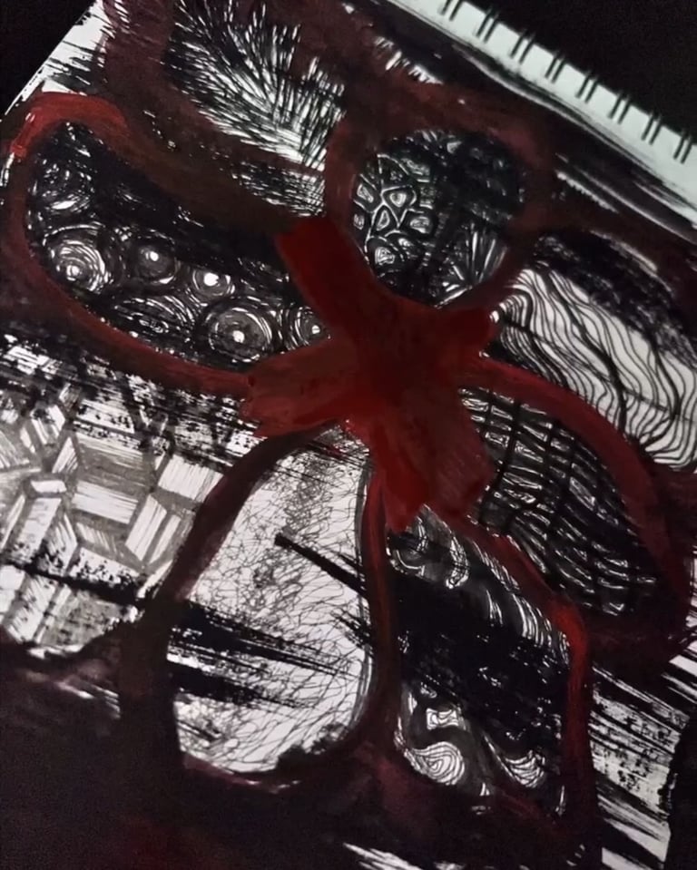 不規則卻不雜亂的線條描述著生活中的凌亂壓力但卻又不失之中的美麗使人好像中毒一般不得不沈迷於其中。