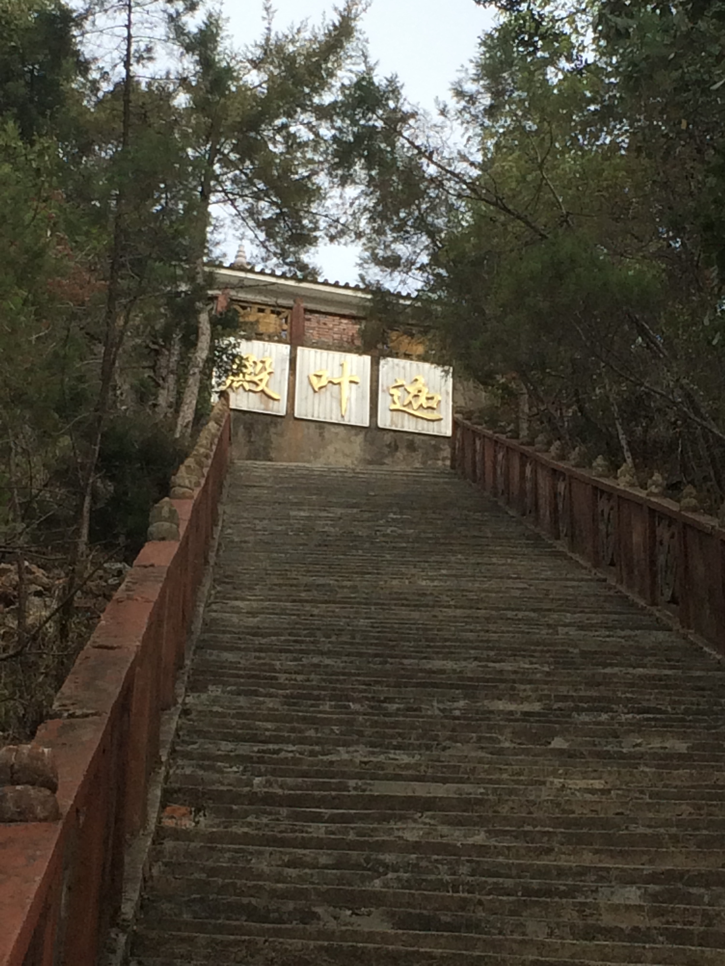 雞足山腳下,客棧老闆娘告訴我,要到半山腰的祝聖寺附近才有吃飯住宿的地方,上山的路有兩條,走行人石階梯直上要一個小時左右,走車道要三個多小時,現在淡季,整條小路上可能只有自己一個人,而大路還會偶爾有車經過。掂量了一下,選擇了大路,畢竟一個人,在杳無人跡的小路上要是看到墳墓呀或是猴子呀什麼的,那怪恐怖的。