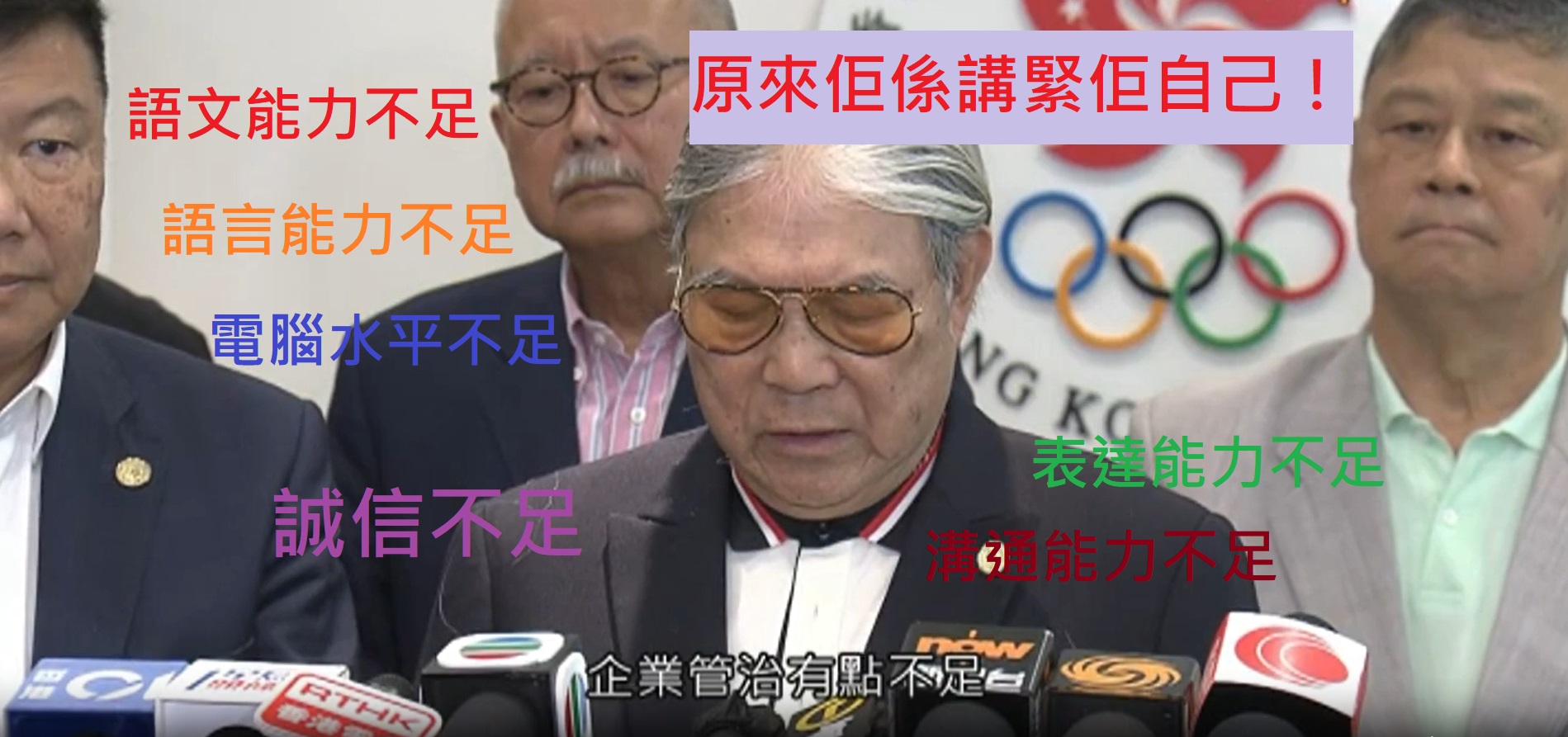 那班港協高層... 語文能力不足、語言能力不足、表達能力不足、溝通能力不足、電腦水平不足、誠信不足,完全一團糟,這才是他們口中的企業管治能力不足!