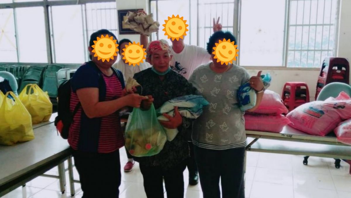 2018年6月,跟著行愿會許執行長、開心行善團團長謝師兄、四位師姊和三位帥哥到偏鄉村民活動中心,搬下滿滿一卡車的物資品,有冷凍粽子、米、沙拉油、醬油、鹽、糖、麵條和二手衣,花了半個多小時整理排列好,待謝師兄講解發放流程後,就開始由村幹事孫先生幫忙核對低收入戶和獨居老人的身份資料,算好每家人口數再由師姊們數粽子裝袋發給,按順序再拿其他的物資品,然後請村民們再去挑選適用的二手衣。