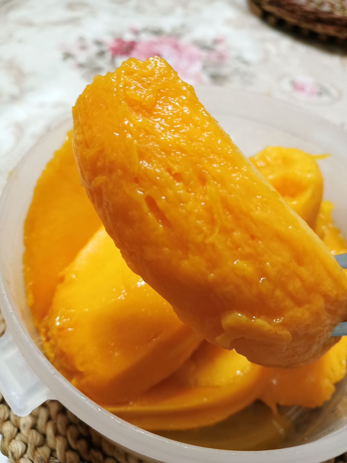 過了兩日,從冰箱取出芒果,我和媽媽一人一顆。一塊塊、黃澄澄、又冰又涼,著實是「夏天最棒的享受」。