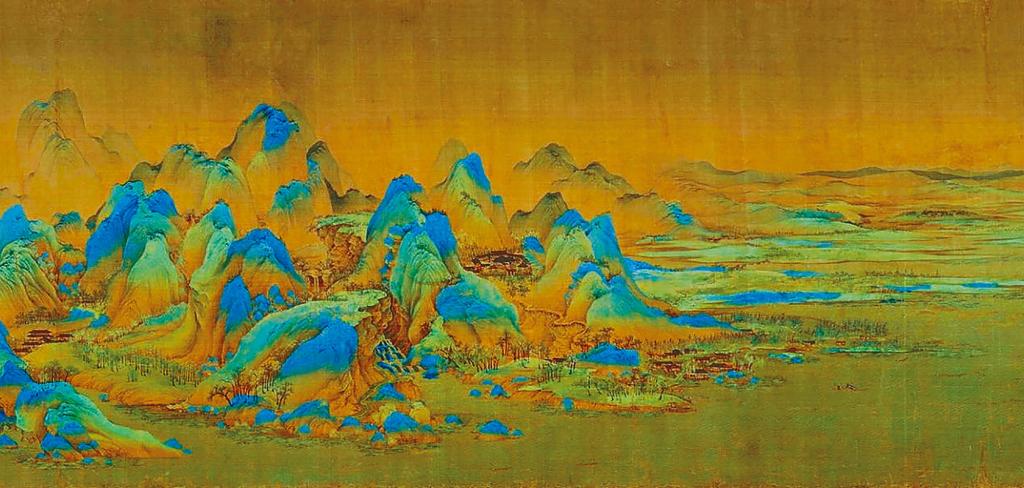 青碧山水始於晉魏而盛行於唐,到宋代漸漸式微。王希孟這幅作品可以被視為青碧山水收筆之作。宋代中晚期,淡雅的水墨畫漸露頭角,成為中國長盛不衰的藝術特色。
