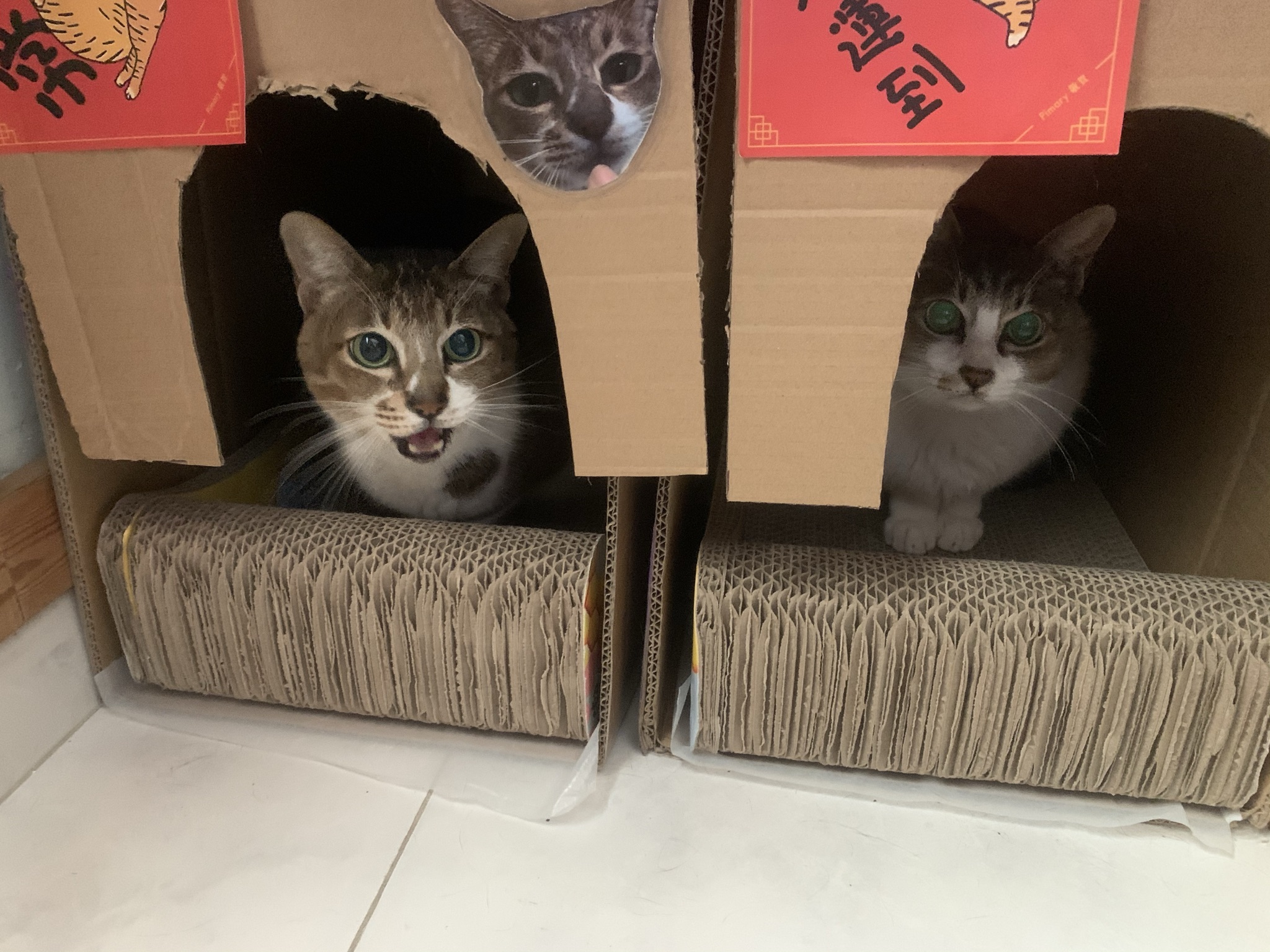 這是現時住在我家的豬皮兄弟,今年十一月便是十四歲的老伯伯了。他們由店舖的假天花跌下來後,便由我前上司接回家撫養,及後因家中變故,由家貓變成舖貓,又因店舖被業主收回後,前上司家中無法容納,輾轉來到我的家。