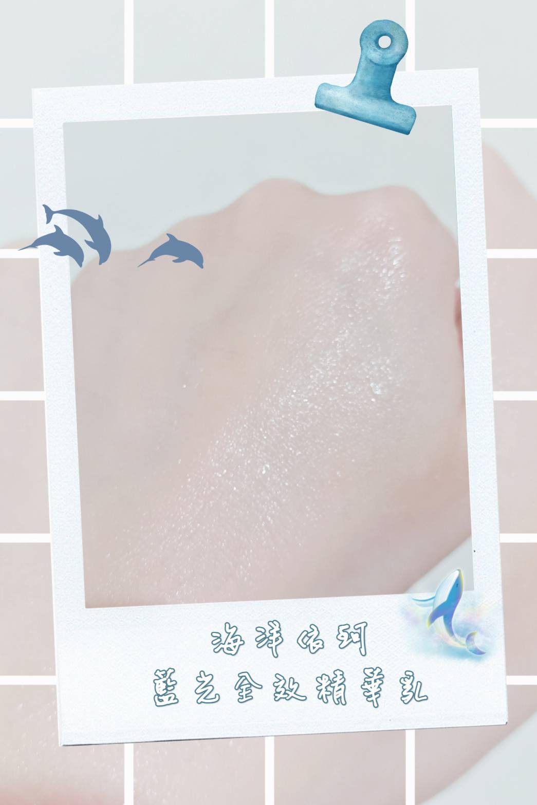海洋依珂的這款【藍光全效精華乳】,質地介於水和乳液之間,相當輕盈水潤,很容易推勻並被皮膚吸收。味道是由天然植物萃取的精油調製而成,聞起來清新怡人、療癒放鬆🌿。