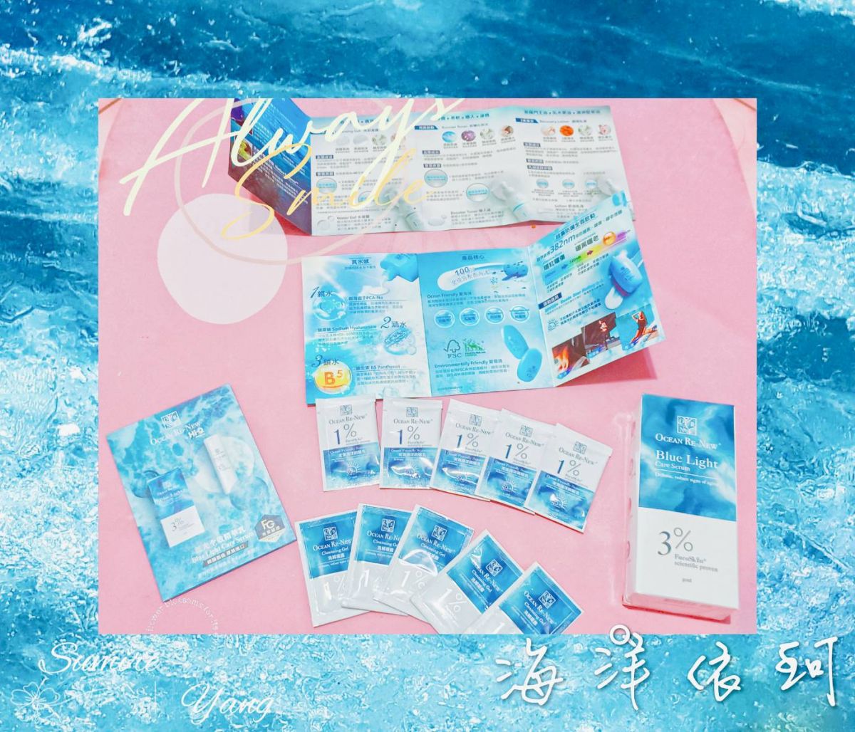 這次體驗的品項是【Ocean Re-New 藍光全效精華乳】,具有修護/亮白/保濕三大功效。