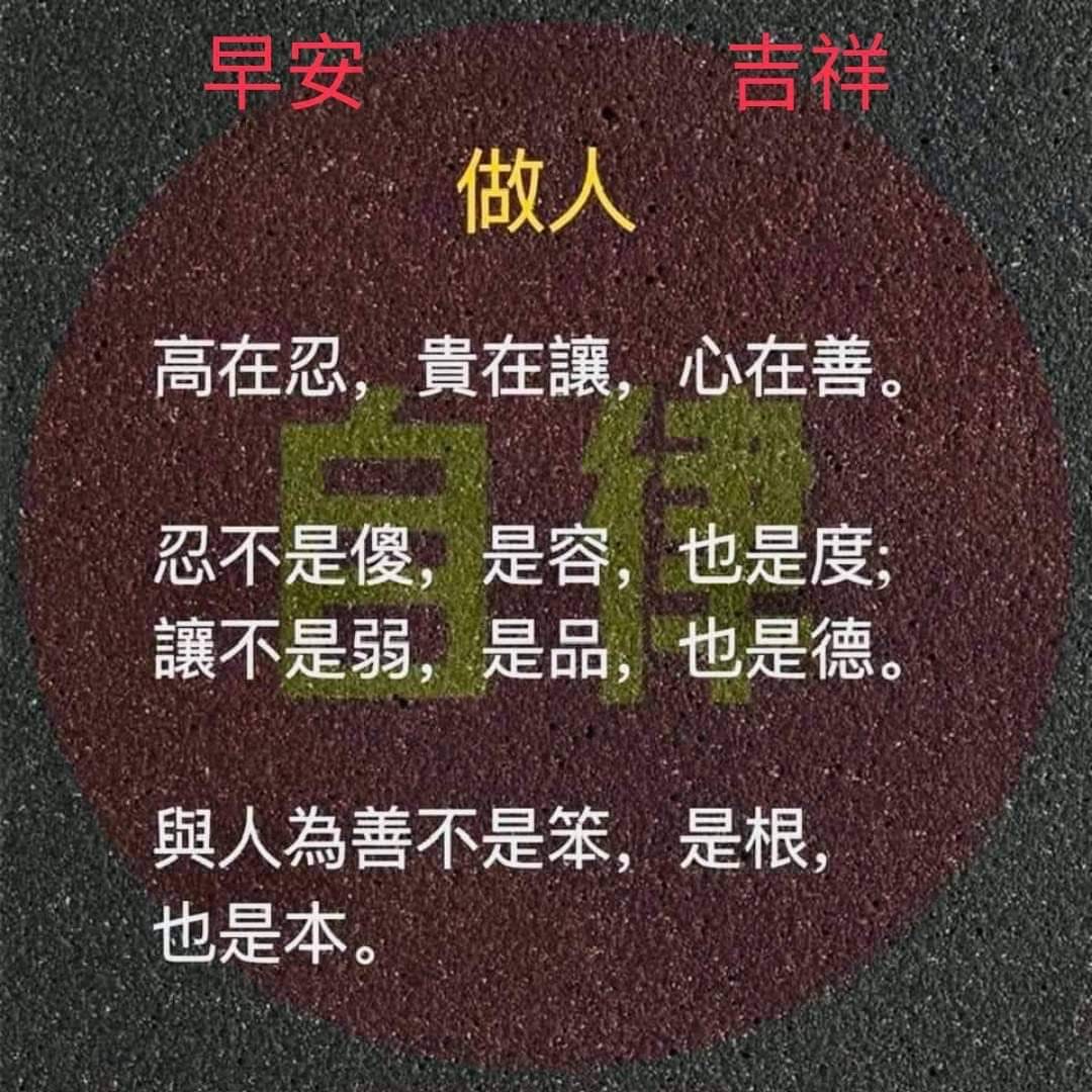 26、做人,高在忍、貴在讓、心在善。忍,不是傻,是容,也是度;讓,不是弱,是品,也是德;與人為善,不是笨,是根,也是本。