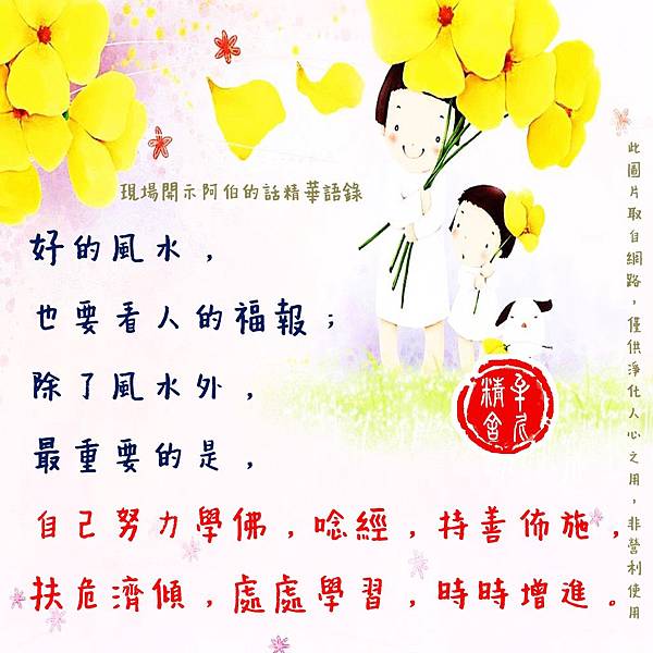 1.真正的修行人是不重視錢,錢是用來做有意義、利益眾生的事。善事做多,則能高枕無憂。