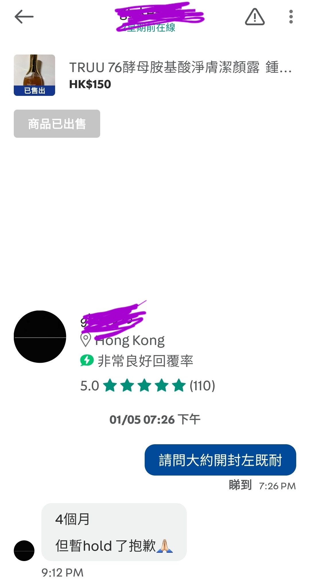 想要在二手平台Carousel 購買只用過幾次的TRUU潔面乳,結果已经有人留起了