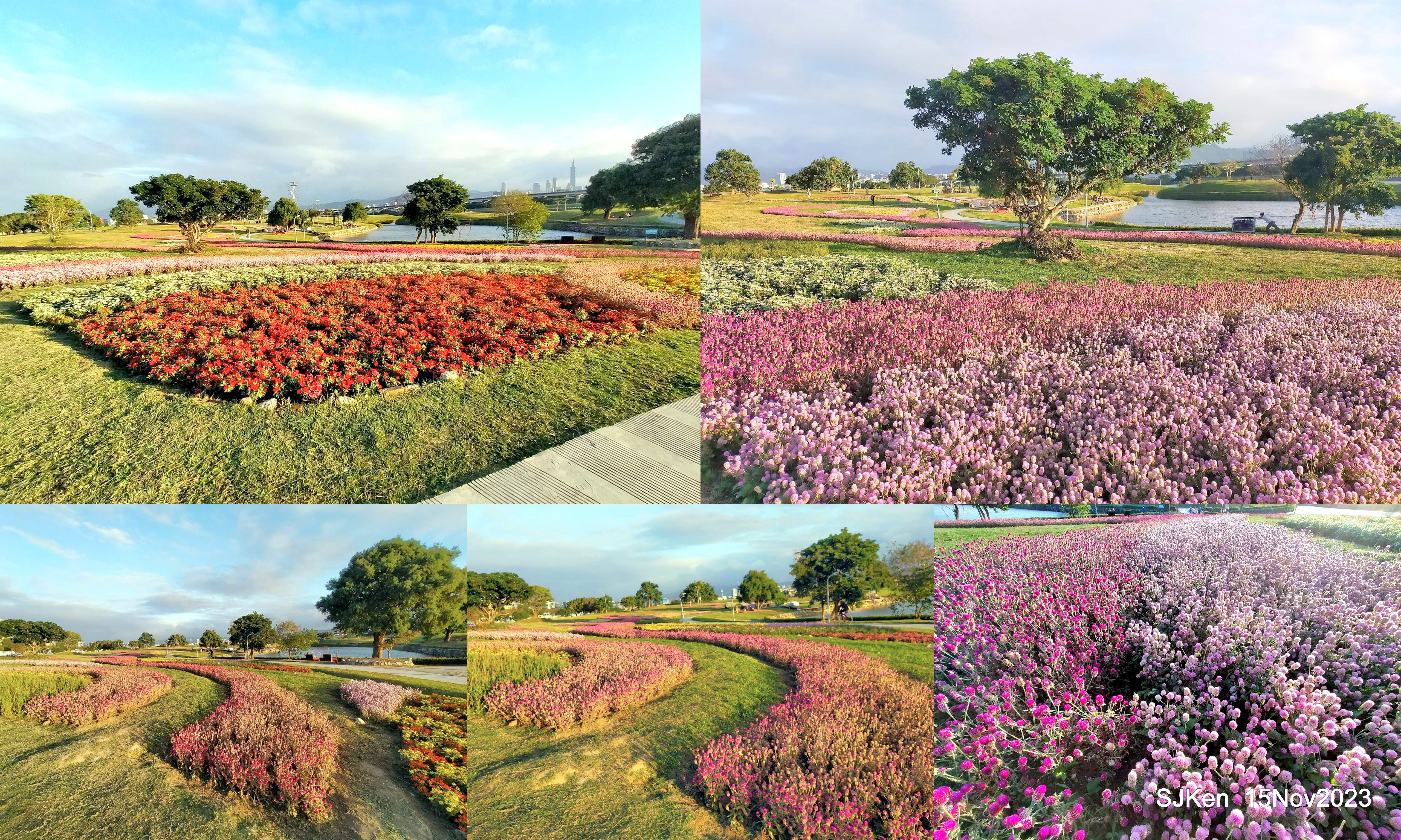 (台北輕旅行) 「美堤河濱公園親水灣畔花海 」--- 親水灣畔冬日盛景,千日紅(圓仔花),以及天使花、小百日草花繽紛多彩好療癒!