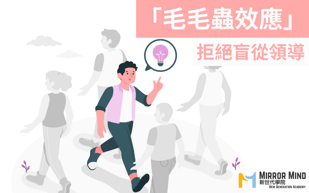 「毛毛蟲效應」(Caterpillar Effect)的實驗目的是要向我們傳遞一個重要的訊息:盲目跟隨他人,將會導致災難性的結果。就像毛毛蟲一樣,它們只是無意識地相互跟隨,不敢嘗試新的方法,無法找到更多的食物來源,最終走向死亡。在日常生活中,我們不難以避免這種情況發生,會傾向盲從過往的經驗,依賴慣性思考而不會轉換角度。同樣地套用在職場上,盲目跟隨別人也可能導致組織的失敗和個人的挫折。