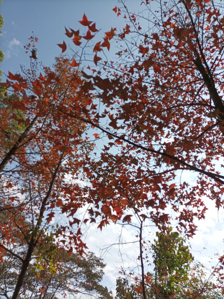 另外是觀賞自然美景楓葉,坦白說今年是我自己首次獨自前往元朗大棠看楓葉,以前我未曾嘗試過去看因為在香港要看此景象,最好的地方是元朗大棠不過真是好遠,要是想看不如留待出國旅行才實現吧,為何今年有這一份幹勁,事緣是去年我去了一趟日本旅行,主要是去首都東京看楓葉,可惜因它是屬於大自然景象,容易受天氣問題影響令景象失色,即景色不理想。既然在日本欣賞不來唯有寄望香港,所以成就此行。基於元朗是一個很遠的地方,要預留好多時間前往,因此我選擇在周日早上十時左右由家裏出發,坐港鐵到美孚站轉乘屯馬綫到朗屏站下車,然後搭港鐵免費接駁巴士入大棠,下車後還要行一段山路才算踏入大棠,雖然我已預留時間去但都要下午一時才到達目的地,當抵達時我便周圍行找尋楓葉樹足跡,事實上大棠的楓葉也不是好紅,有些還是黃色,我都有點兒失望,幸好我多行幾步發現有幾處地方有人群聚集,原來是幾夥楓葉樹,他們談論楓葉大小和美麗是否,隨即拿着手提電話四圍拍攝它爭取最佳角度,期間見到地方佈滿脫落的楓葉,好多都是黃色和綠色,有些途人借故拿了數塊紅色楓葉,友善地問我要不要一個,我友善回應不需要謝謝好意,自己就拾起四塊,其實這行為是不可的,不過大家真想保留這些東西作留念而己,差不多四時半自己就下山坐巴士離去,這一趟大棠楓葉之旅就結束。