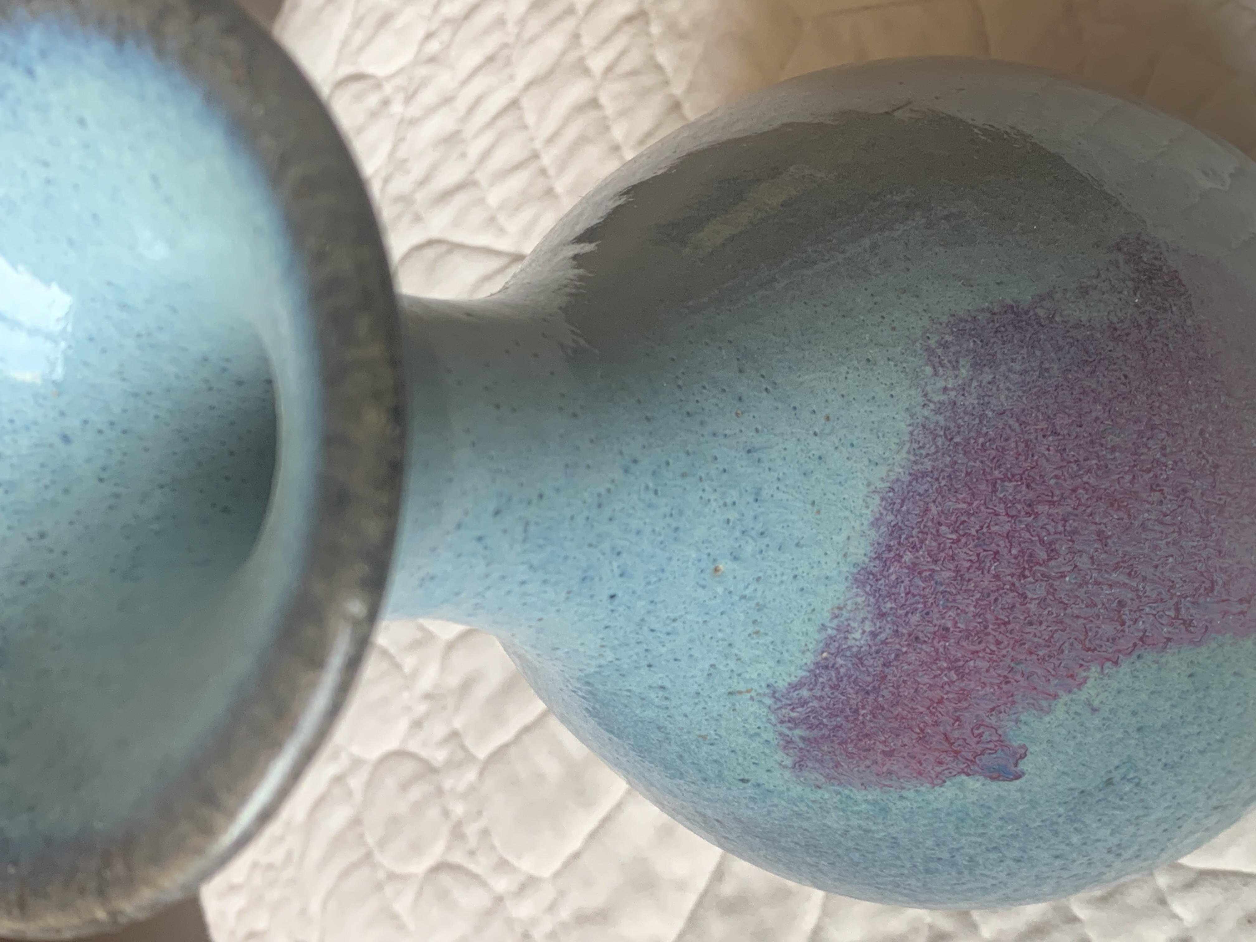 鑒定鈞窯,除了千變萬化的釉水外,我們還可以留意「蚯蚓走泥紋」,這是高溫之下釉彩滲入胎土罅隙的痕跡。做化神奇非常自然。