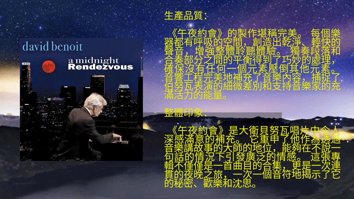 音樂觀自在: 午夜的音樂心情(David Benoit - A Midnight Rendezvous)