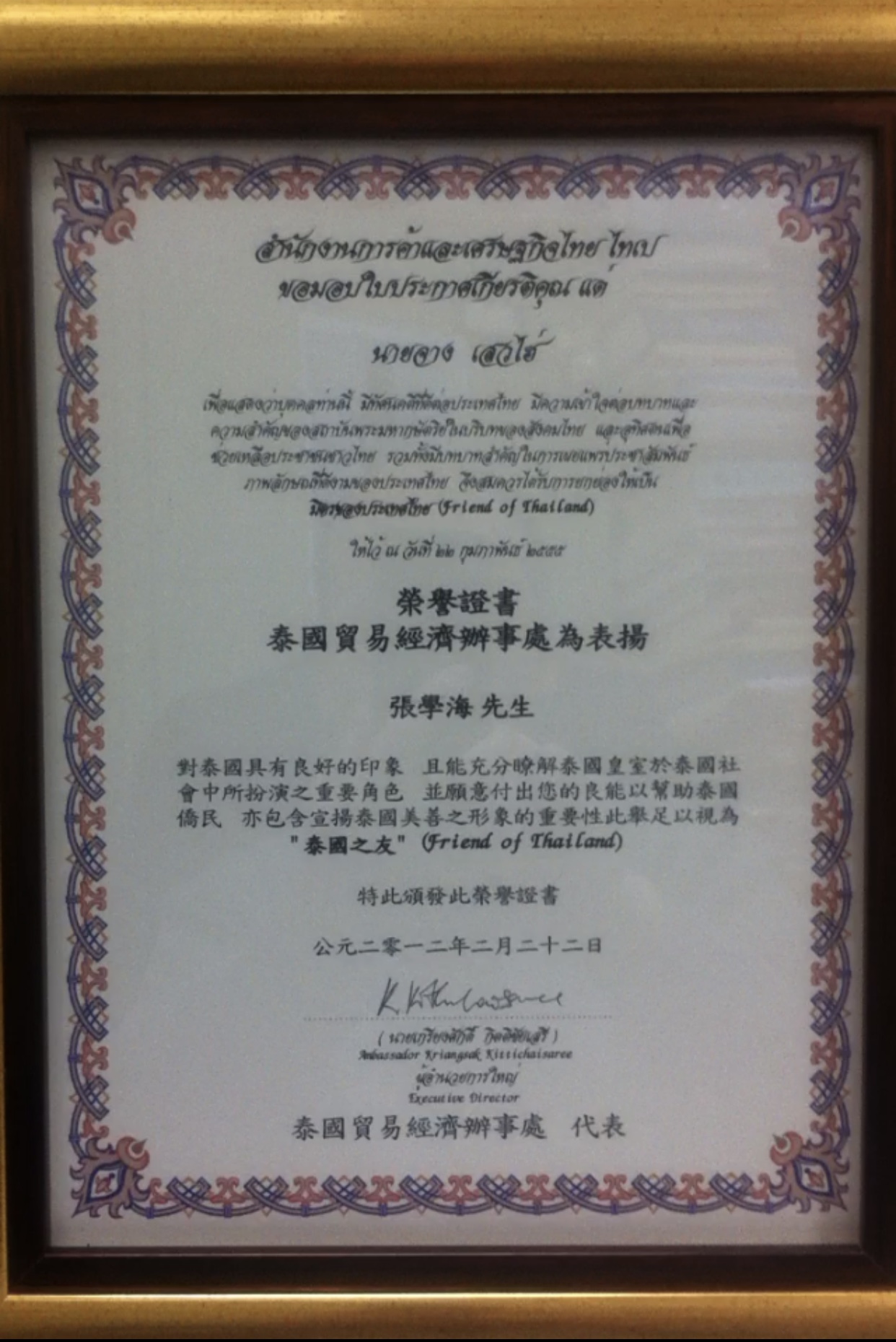 作者張學海進出泰國長達25年之久,長期関懷泰國、緬甸、寮國(老撾)柬埔寨(高棉)偏遠山區的學校、老人、婦女、兒童、少數民族,甚至監獄受刑人及戒毒中心的勒戒人都予以援助。同時也在文化、教育、藝術、宗教、經濟、貿易、工商等各方面促進交流。這些默默的努力,一路走來,始終如一,終於獲得泰國外交部的肯定與認同呈報宮務廳,在蒲美蓬國王任內頒授「泰國之友」榮譽。為此作者仍然持續對於促進台灣與泰國的各項友好交流,不遺餘力,希望藉由本專欄深入淺出的介紹,有助於台灣與泰國、東南亞人民真正的理解,並且帶來長遠而真摯的友誼!