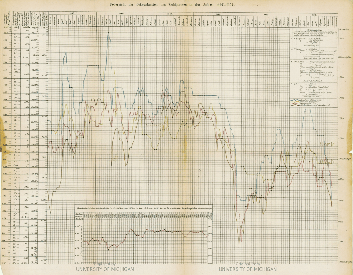 作為德國金本位的鼓動者,在1861商會的漢堡代表Soetbeer匯集了全球每年金銀產量的數據,錯誤地判斷法國復本位將很快推到銀幣被取代完全的一端極限,北德意志邦聯方成立後的1867年商會上,Soetbeer的進一步鼓動使金本位成為顯學