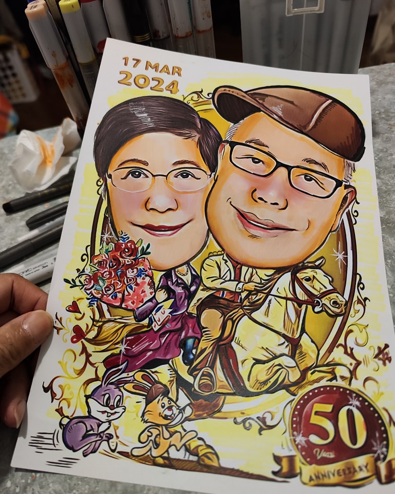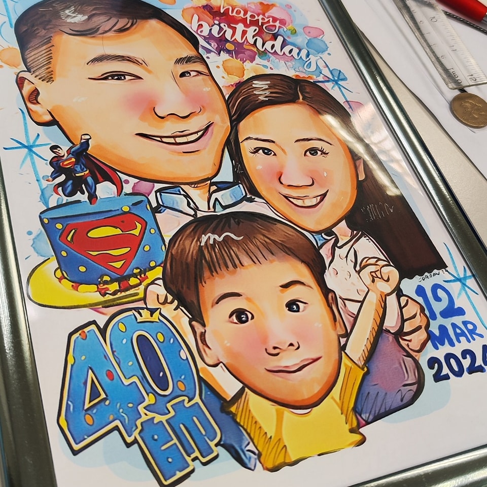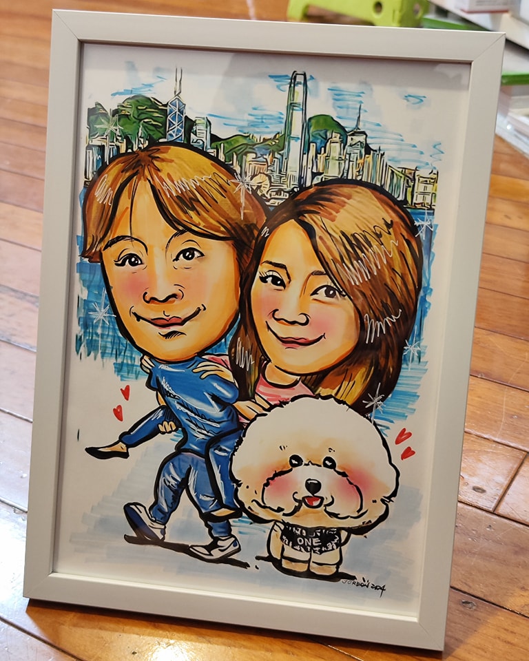 每一張出色的作品,就像一張感動客戶的魔法,據客戶的回饋,每當他們將畫作送給身邊的朋友時,又會迎來二次弄哭,佐老師的作品就好像抓到那種不離不捨、鼓舞任何人的核心與想念的竅門。作品內每一個人掌握左佢地開心的一刻繪畫出來,好有正能量,就算客戶提供的相片只是普普通通一張相片,佐老師都能將他畫到超開心的樣子,這就是客戶一次又一次找佐老師畫
