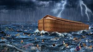 我想起《創世紀》的諾亞大水:四十晝夜的大雨淹沒高山,生靈盡亡,唯藏身方舟的挪亞一家與所帶的動物得以存活。