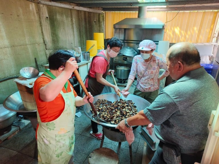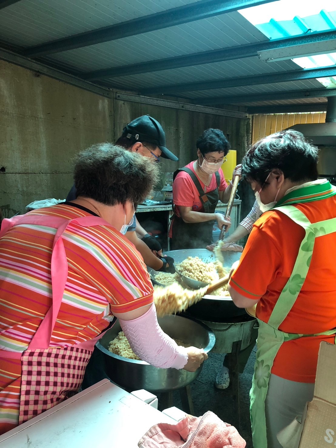 感恩這次活動來了39位志工,在每次等待餡料補充時的休息時間,也準備了多樣水果、飲料給大家補元氣。非常感謝鄧三姐、鄧四姐提供的午餐,大鍋湯裡居然有屏東楓港買來的黑鮪魚,超鮮香的!