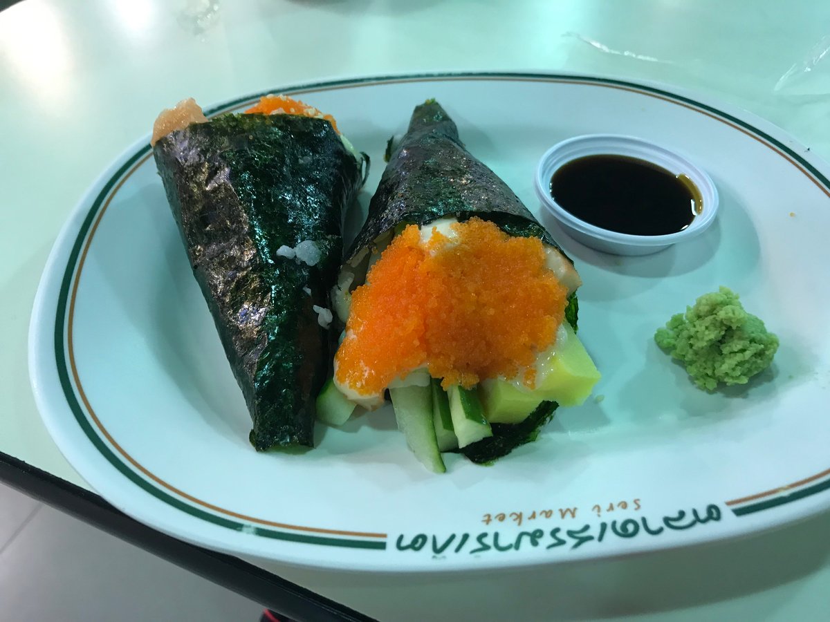 本來我想吃印度煎餅,但攤檔沒有人。那便去了隔壁的壽司檔。