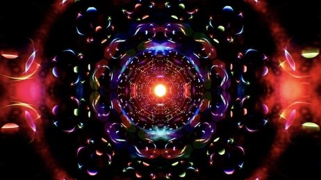 过了一会儿,天空中出现了一个波西米亚风格的图腾,陆离奇丽,有着霓虹灯的色泽。它由各种宇宙中的物质组合而成,排列成规整的长方形图案,内部结构细节复杂而重复。这大概率是外星文明做的庆典内容。图腾像个巨型罩子,把整个庆典上空覆盖得严严实实的。我心中在想它的美和清晰,看个不停,又因为巨物恐惧症而感到呼吸困难。
